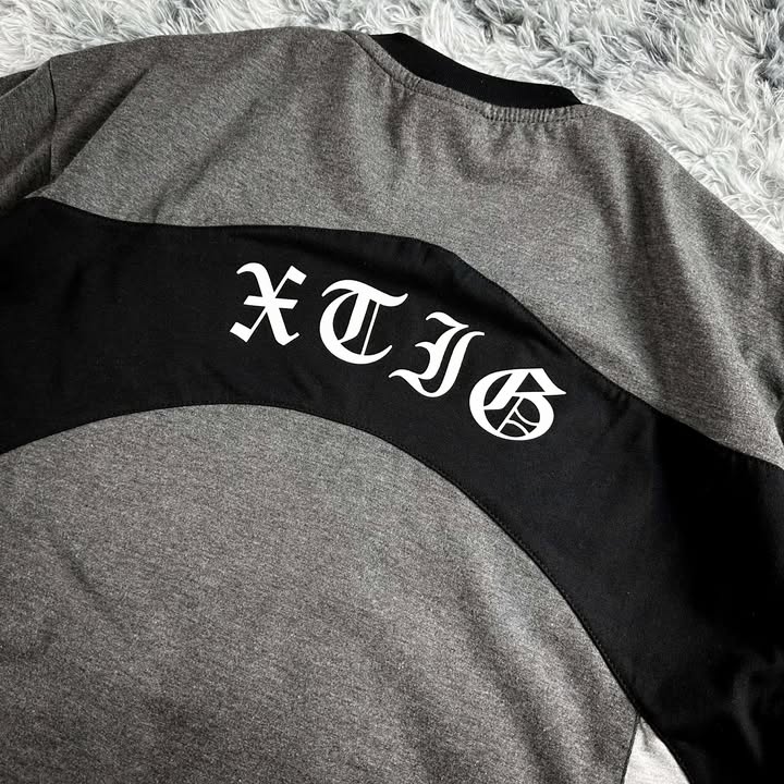 >XTIG woven tag attached on inside back neck, lower left side, and left side sleeve of the shirt.