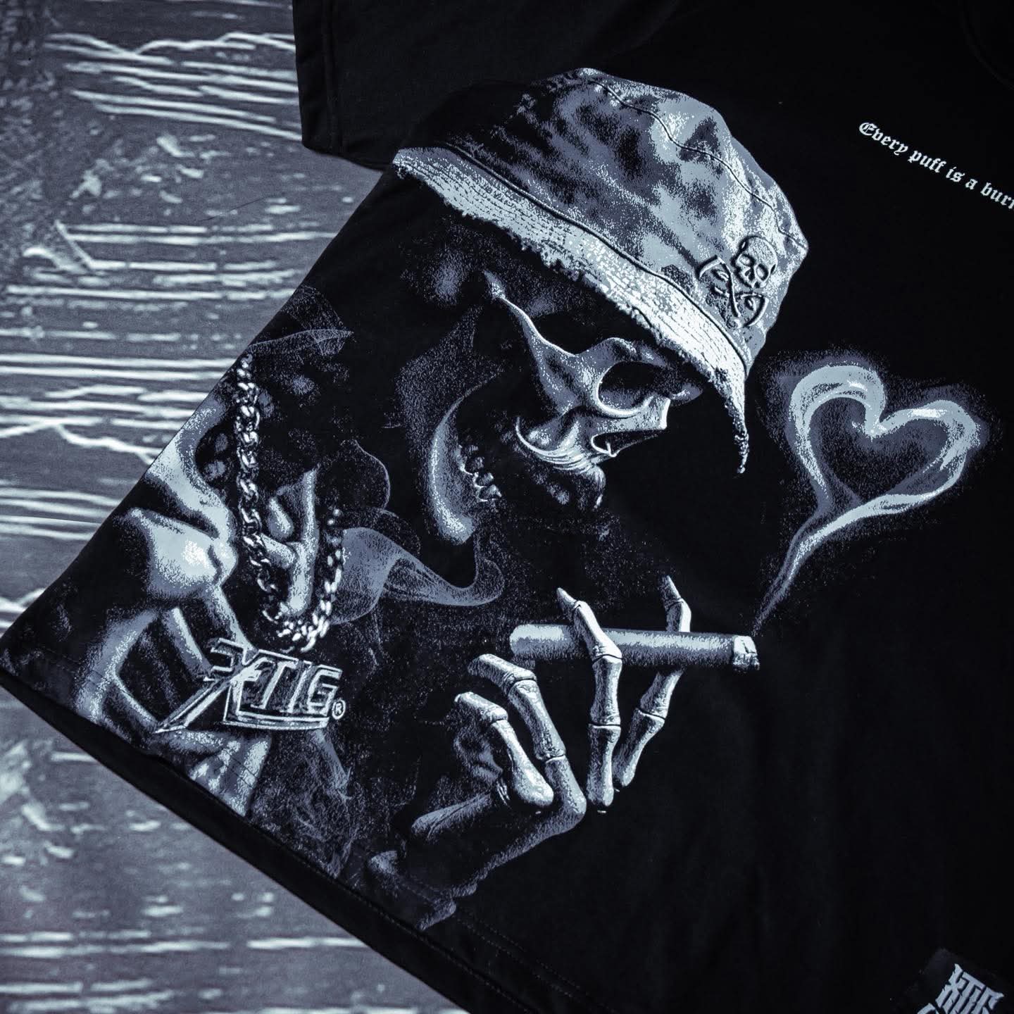 >XTIG woven tag attached on inside back neck, lower left side, and left side sleeve of the shirt.