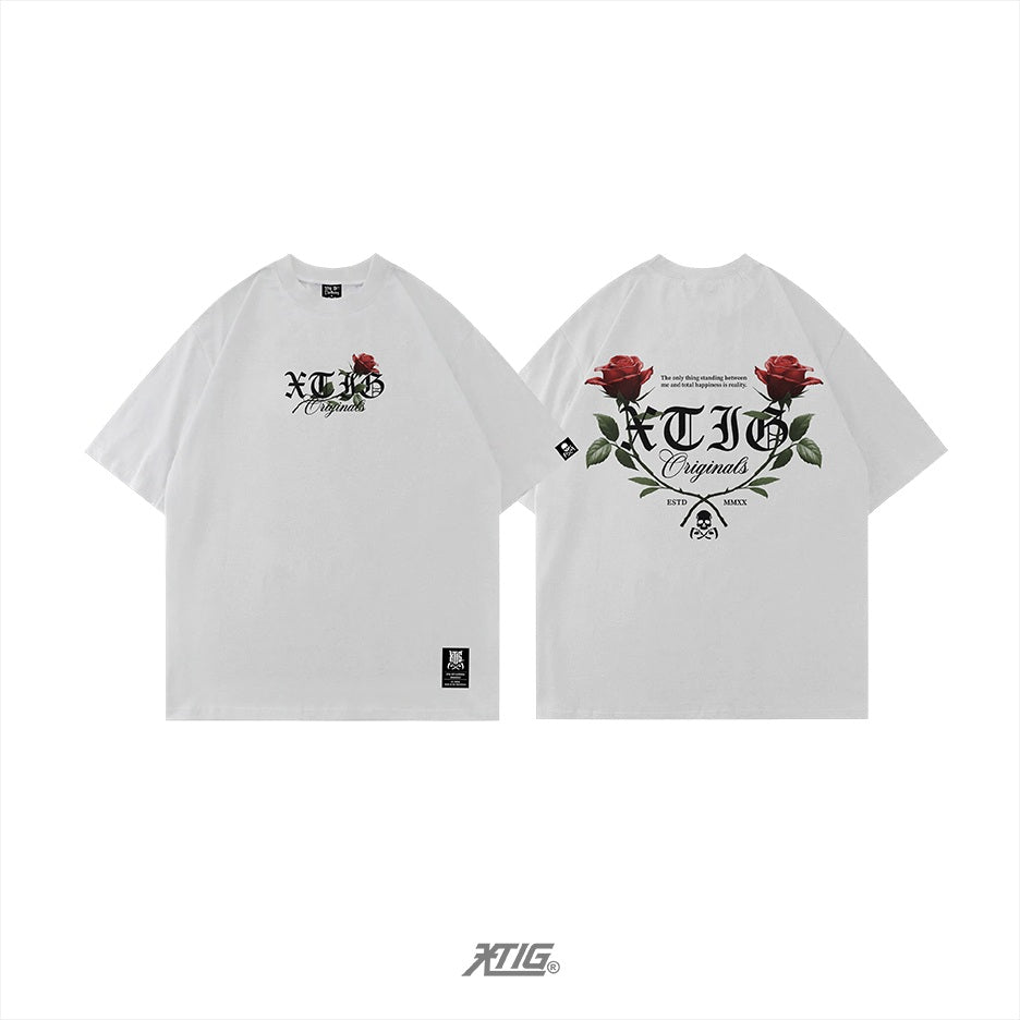 >XTIG woven tag attached on inside back neck, lower left side, and left side sleeve of the shirt.