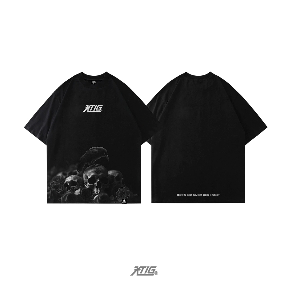 >XTIG woven tag attached on inside back neck, lower left side, and left side sleeve of the shirt.