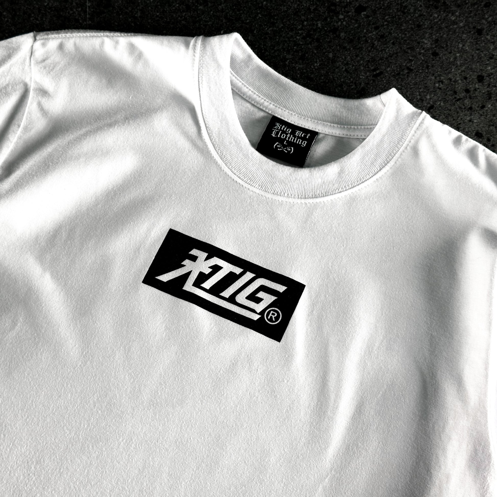 >XTIG woven tag attached on inside back neck, lower left side, and left side sleeve of the shirt.